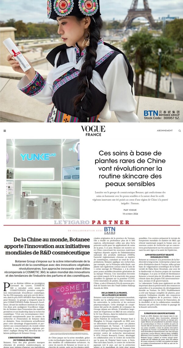 From top to bottom: Botanee&Winona product; Coverage by VOGUE FRANCE,Le Figaro