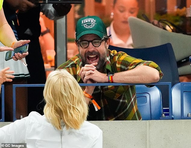 Jason Sudeikis looked in high spirits on Monday as he attended day eight of the US Open Tennis Championships at the USTA Billie Jean King National Tennis Center in New York City.