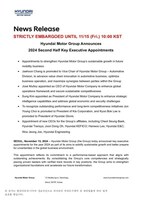 SEOUL,South Korea,Nov. 14,2024 -- Hyundai Motor Group (the Group) today announced key executive appointments for the year 2024 as part of its aims to solidify sustainable growth and better prepare for uncertainties in the global business environment.