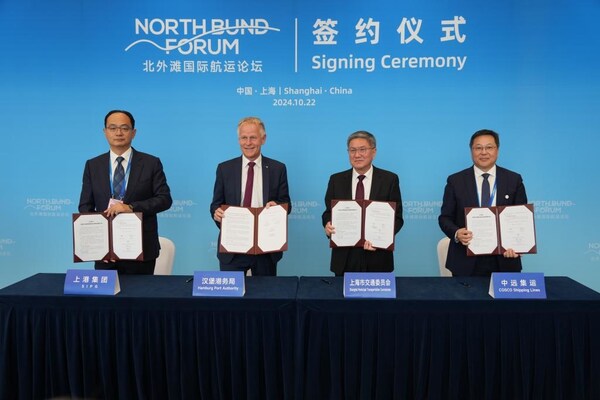A memorandum of understanding (MoU) was signed among Shanghai Municipal Transportation Commission,Hamburg Port Authority (HPA),COSCO Shipping Lines Co.,Ltd. and Shanghai International Port (Group) Co.,Ltd.,all of which will work with technology and equipment manufacturers,energy suppliers,cargo owners,terminals and shipping companies to accelerate the decarbonization process.