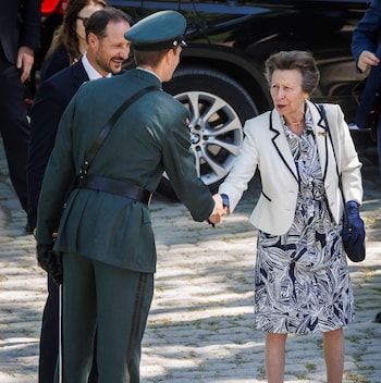 The Princess Anne met Crown Prince Haakon Magnus of Norway (L) during her trip