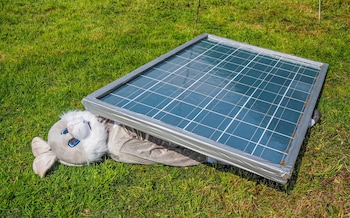 Pictures of the protest show “rabbits” trapped under solar panels.