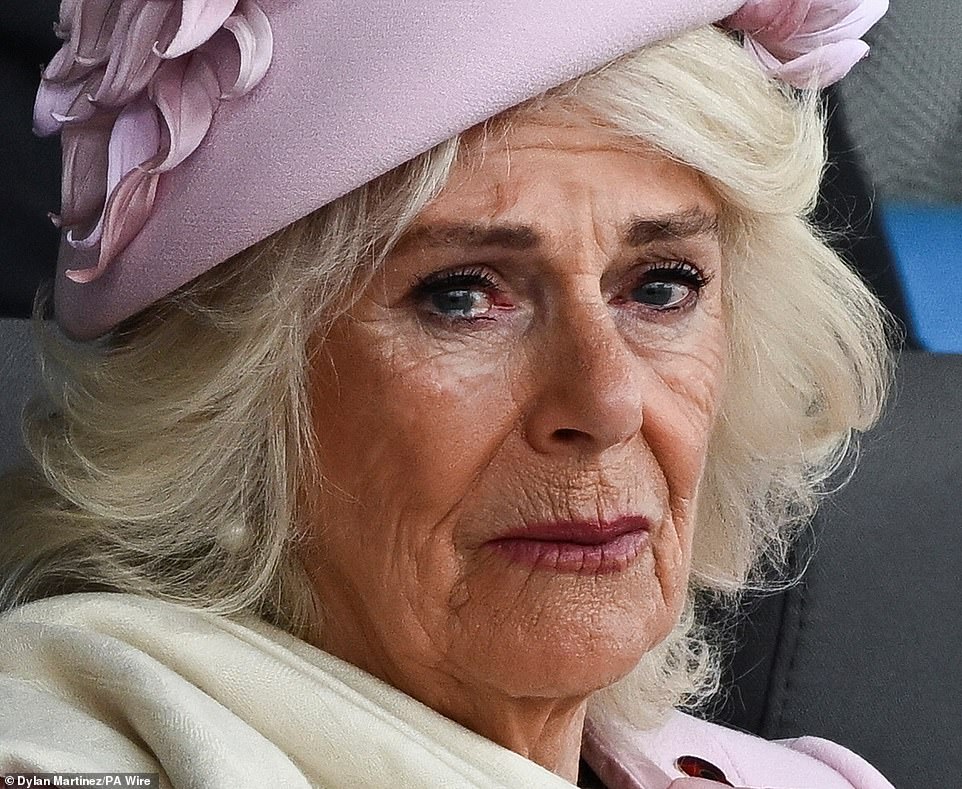 Camilla was overcome with emotion today as a D-Day veteran recounted the horror of losing his best friend on the beaches of Normandy 80 years ago.