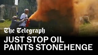 Just Stop Oil,which is calling on the next government to sign up to a legally binding treaty to phase out fossil fuels by 2030,said the substance used to cover the stones was washable orange cornflour.