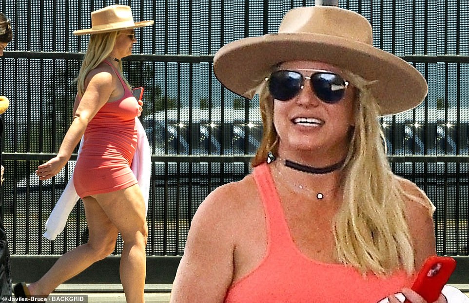 Britney Spears showed off a healthy vacation glow she was spotted on Monday for the first time after her ex-boyfriend Justin Timberlake was arrested and charged with a DWI.
