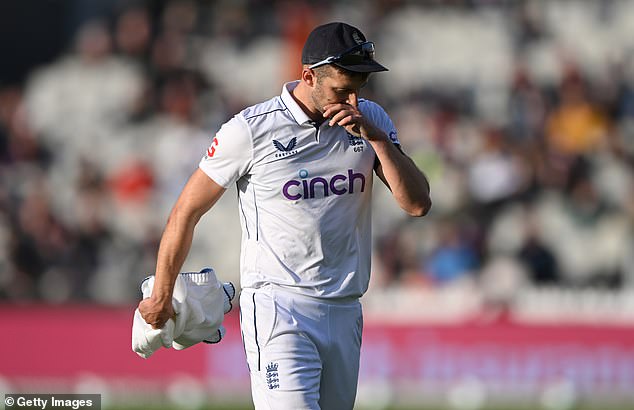A statement posted on England Cricket's official X account on Saturday morning read: 'Mark Wood has sustained a right thigh muscle injury.