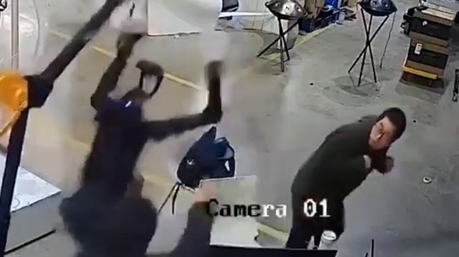 Footage shows a humanoid robot thrashing its arms and going ‘berserk’ as handlers cower from it in a workshop.