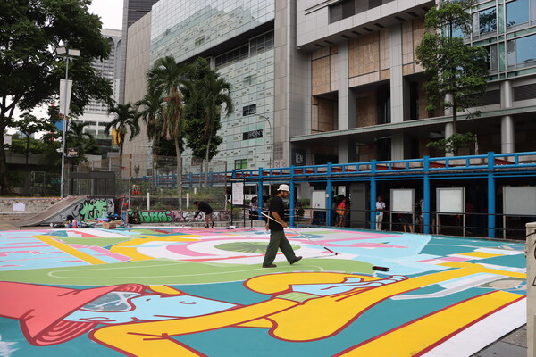 Three visual artists from Singapore - Zero,Spaz,and Simpleproblembeings - worked alongside French muralist Elsa Martino and graffiti artist Kekli to enliven the space by decorating the walls and the ramps of the skate park with vibrant designs. Supported by Singapore's urban art collective RSCLS,these artists also will lead the public in engaging art jam sessions to partake in a collaboration of community artwork.