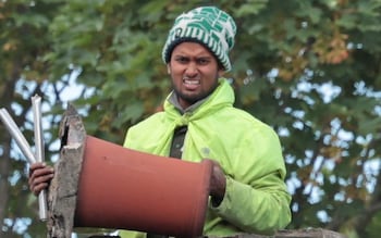 Witnesses said the man,who was wearing a high-vis jacket,and a green and white woolly hat,dark trousers and casual shoes,was throwing objects to the ground.