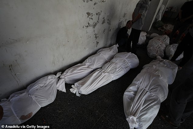 Pictures show how the building was reduced to rubble,with rescuers working at the scene. The victims were extracted and taken to the local hospital,where white body bags were laid out on the ground and distraught mourners seen gathering.