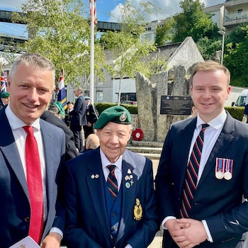 Fred Thomas (right),Labour candidate for Plymouth Moor View,at a D-Day memorial
