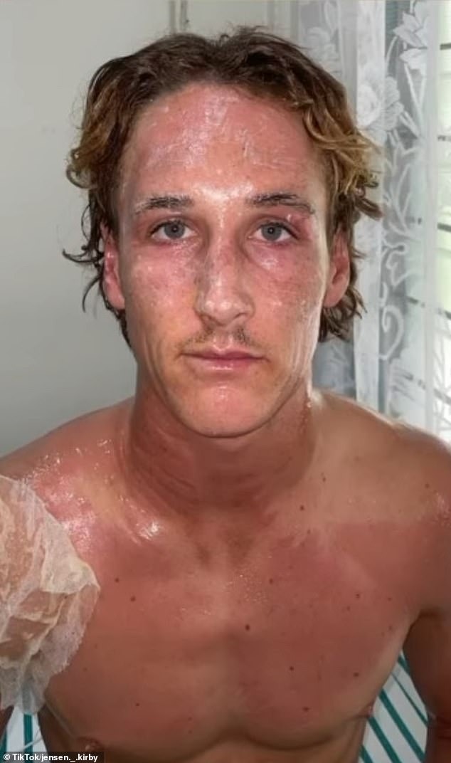 Mr Kirby said it felt like a 'sunburn times 100' and he ran straight back into the sea to get relief but unfortunately his leg hit sand and tore skin off.