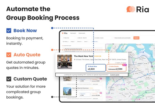RIA 1.0 is an advanced AI platform that fully automates group hotel reservations,tailored for travel agencies and corporate clients handling complex requirements. Unlike traditional systems,RIA enables both direct bookings and customized group requests,processed entirely by AI without manual work. The platform simplifies large-scale,multi-hotel bookings — tasks that usually take days — completing them in minutes.