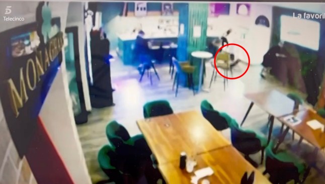 Footage shared by Telecinco programme El Programa de Ana Rosa then shows the killer,who is dressed in black,walk towards Monaghan inside the bar.