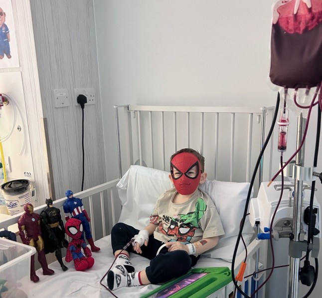 Isaac Balmer,aged four,says he gets ‘Hulk blood’ in his regular transfusions as it makes him stronger (Picture: Family handout/PA Wire)