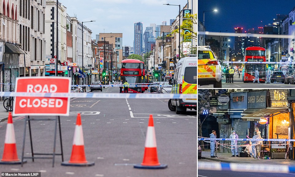 Earlier this morning, forensic officers were pictured outside the restaurant gathering evidence as a police cordon remains in place on Kingsland High Street.