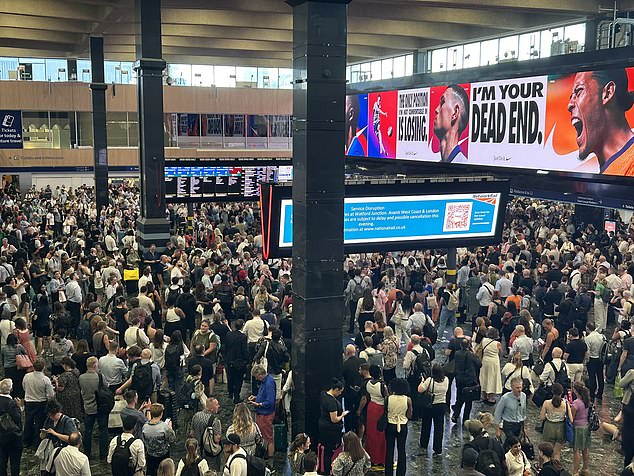 Another commuter posted on X that Euston Station is 'ridiculously hot and getting overcrowded now and still barely any trains getting out.'