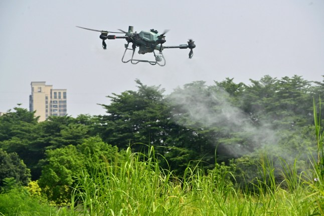 A drone sprays insecticide on August 1,2025 in Guangzhou (Picture: Getty)