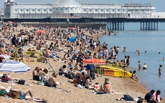 Sunbathers flocked to Brighton beach on Monday as the weather hotted up