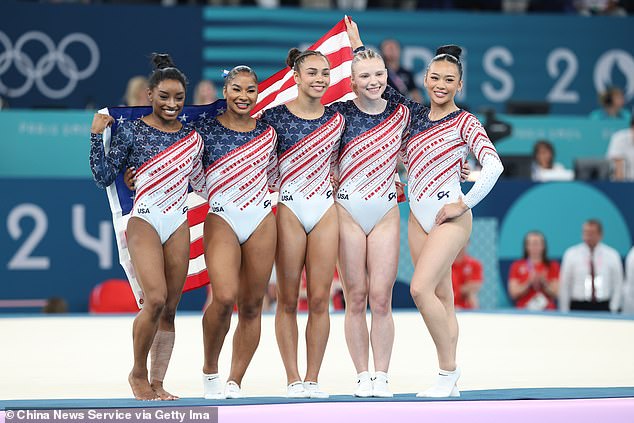 Simone added: ‘We're super excited. We're honored to represent the US every time we get on a world stage but accomplishing that gold and that goal was just an amazing feeling.