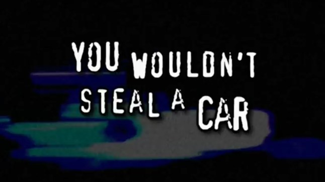 You wouldn’t steal a car. You wouldn’t steal a handbag. You wouldn’t steal a television. You wouldn’t steal a DVD.
