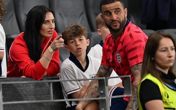 Kyle Walker with his wife Annie Kilner and their children at the Denmark vs England match