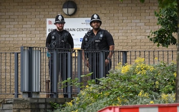 Police stand outside the Bristol Brain Centre at Southmead Hospital where Princess Anne is recovering