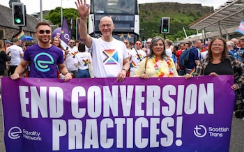 On Saturday,Mr Swinney marched in Edinburgh Pride behind a banner which stated “end conversion practices” and reaffirmed his party’s commitment to self-ID.