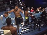 Furious boxer sparks CHAOS by lashing out at referee who stopped his fight after the second round... before the official punches BACK and flees the ring in Santo Domingo