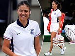 Emma's Euros fever! Raducanu wears her England kit to Wimbledon practice - and carries a personalised £2,400 Christian Dior bag - as she gets set for Slovakia clash and her return to SW19
