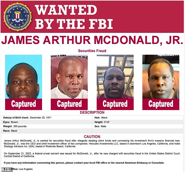 McDonald became a fugitive in November 2021 when he failed to appear before the US Securities and Exchange Commission to testify after being accused of defrauding his investors.