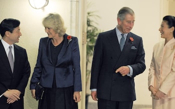 The King,and the Queen,at the time Duchess of Cornwall,meet Crown Prince Naruhito,before his ascension to the Chrysanthemum Throne,and his wife,Masako,at their residence in Tokyo in 2008