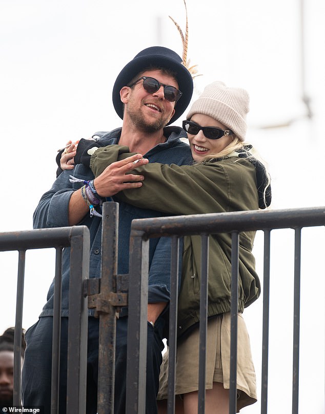 Anya Taylor-Joy couldn't wipe the smile off her face as she wrapped her arms around a male friend during the last day of Glastonbury Festival on Sunday.