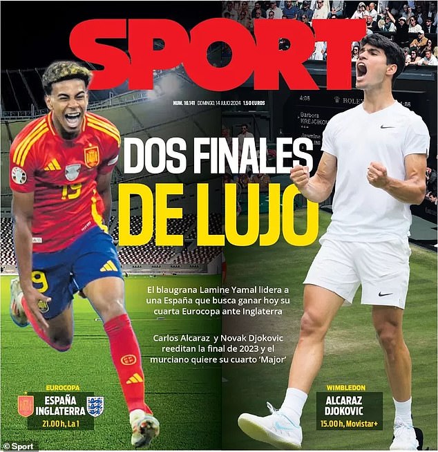 AS opted to preview the final with an image of a child playing football near a mural of Spain stars Yamal and Williams,including the headline 'The future is ours'.