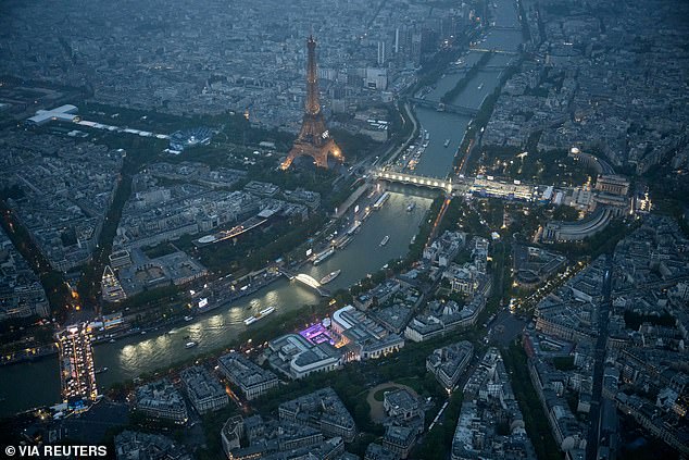 It comes as new pictures from last night's ceremony show a spectacularly illuminated Paris with landmarks such as the Eiffel Tower taking central stage.