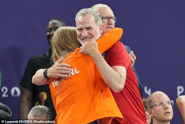King Felipe of Spain and Princess Amalia of the Netherlands put on a very animated display as they watched the Dutch team battle host nation France on the basketball court at the Olympics.