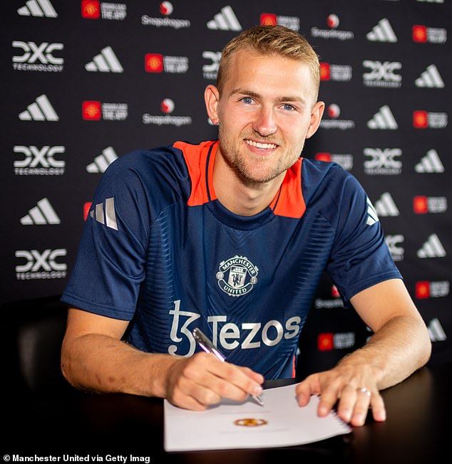 De Ligt,25, was pictured at Munich Airport on Monday with fellow signing - and ex-Ajax man - Noussair Mazraoui,with Man United swooping for both Bayern stars as part of Ten Hag's defensive overhaul.